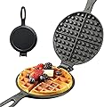 Cast Iron Waffle Maker for Stovetop or Camping Grill Two Piece Hinged Non Electric Waffle Iron Makes 7" Round Waffles