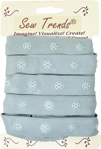 2 yardas de plástico con botón a presión de cinta de poliéster gancho y ojal con cremallera Popper Press Stud Fastener-Baby Blue