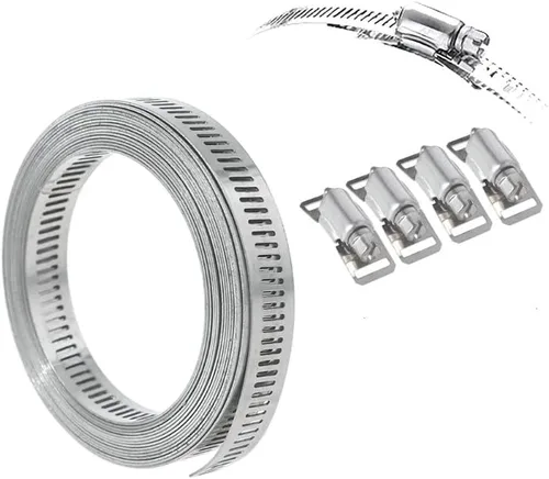 correa de acero inoxidable en cualquier longitud que desee adaptarse fácilmente a diferentes mangueras. La abrazadera de manguera personalizada también se puede ajustar el tamaño reduciendo su diámetro con un destornillador, para satisfacer sus diversas necesidades. El kit de abrazaderas de manguera viene con una correa de metal de 8 pies y 4 cierres en total, adecuado para cortar y obtener tu abrazadera de manguera larga y grande Sin atascos y sujetadores deslizantes: ¡La hoja de acero de nuestros sujetadores de abrazadera de manguera es más gruesa! Mantiene el fleje de acero inoxidable fuerte y resistente. El tornillo agarra la banda de la correa firmemente para que la abrazadera de la banda se pueda apretar. La abrazadera de tornillo sin fin es muy suave, no es necesario aplicar presión dura Yountiger Las abrazaderas de manguera son perfectas para los conductos de ventilación de su secadora de recolección de polvo, valla de jardín, proyecto de torneado de madera segmentada, soporte de montaje en poste, automotriz, flejes de acero inoxidable, fijación y suspensión de objetos redondos. Nuestro kit de abrazadera de manguera es ideal para usar para mangueras de conductos de aire, segmento de madera, soporte de montaje en poste y fijación de escudo térmico automotriz. También funciona como correas de metal y bridas de acero inoxidable para hacer que tus proyectos sean sólidos
