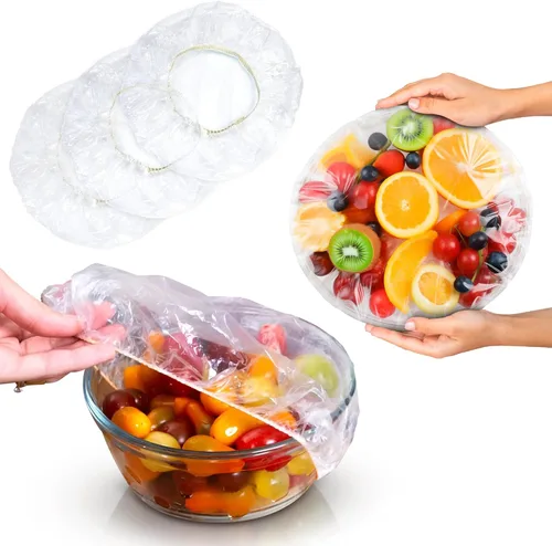 Paquete de 100 bolsas de conservación fresca, 12 pulgadas. Las fundas elásticas para alimentos te ayudarán a mantener tus productos frescos y limpios durante mucho tiempo. Las cubiertas de plástico para cuencos con borde elástico están especialmente hechas transparentes para una mejor visión del contenido del recipiente. Plástico confiable. Las fundas elásticas para cuencos están hechas de polietileno duradero con un grosor de 30 micras, que es resistente a desgarros accidentales, fácil de usar. Las cubiertas de plástico para alimentos son desechables, pero se pueden reutilizar si se desea, gracias al material resistente. Las fundas elásticas de plástico para cuencos no contienen BPA. Seguridad y protección. Nuestras cubiertas de plástico para cuencos con borde elástico protegerán tus productos de deterioros, líquidos y vapores prematuros. Además, las fundas elásticas para almacenamiento de alimentos no pasan olores. Estas cubiertas de plástico para cuencos con borde elástico no están influenciadas por ácidos, detergentes y agua. Características de diseño. Las fundas desechables de plástico están equipadas con banda elástica, asegurando un ajuste apretado. Las fundas elásticas para alimentos son compatibles con recipientes de forma inusual, redondos, ovalados, cuadrados y platos. Las cubiertas de plástico son adecuadas para su uso en microondas o congelador. Versatilidad de uso. Lleva tu comida contigo: picnic, oficina, viaje. Tire de la envoltura de plástico desechable de la cubierta de alimentos sobre las plántulas en el jardín para obtener un efecto invernadero. Use cubiertas de tazón con borde elástico como cubierta para algo que necesita para ahorrar del polvo.