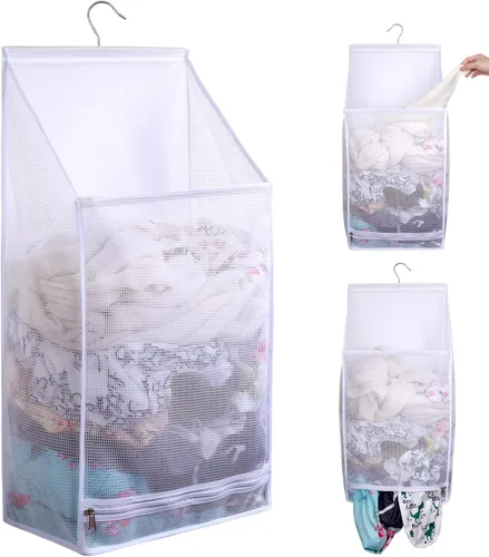 Estructura independiente: la parte superior viene con un colgador giratorio que funciona bien para colgar en la barra de cortina de ducha u otro lugar. El diseño de agujeros abiertos sobre la cesta de lavandería es conveniente para guardar la ropa. Diseño de cremallera inferior trasera para quitar rápidamente la ropa sucia. Tela de alta calidad: hecha de tela de malla duradera, transpirable y transparente, no más ropa sucia maloliente. [Capacidad extragrande] La cesta de lavandería mide 27.6 x 13.8 x 7.1 pulgadas (alto x largo x ancho). El diseño de bolsillos laterales de gran capacidad también se añade en ambos lados, y la capacidad de almacenamiento de la partición es más fuerte. Puede contener ropa, almohadas, productos de baño, juguetes para bebés, etc. Es una buena opción para el dormitorio del campus, viajes en autocaravana o vida familiar. [Duradero y resistente]: hay un diseño de anillo de refuerzo en la parte superior, que puede hacer que la carga de la cesta de lavandería sea más uniforme, el organizador de la cesta de lavandería está hecho de tela más gruesa que otras marcas y no se rompe ni daña después de un uso prolongado. [Portátil plegable]: el contenedor de lavandería plegable se pliega fácilmente para un almacenamiento compacto, ideal para el hogar, campus, camping, apartamentos, hoteles y compras, uso de almacenamiento de viajes en caravana
