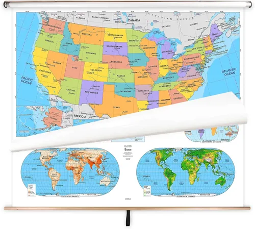 BrightWay Educational - Juego de mapas desplegables para aulas primarias de Estados Unidos y del mundo [con paneles educativos] | Mapas de pared