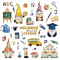 ALIBBON Calcomanías de pared de bienvenida de regreso a la escuela para aula, calcomanías de gnomo para niños, calcomanías de primer día de escuela