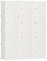 SONGMICS Cube Storage Organizer, Set of 12 Plastic Cubes, Closet Storage Shelves, DIY Plastic Closet Cabinet, Modular Bookcase, Shelving with Doors