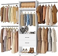 Metal Closet System, 4FT-8FT Closet Organizer System with 4 Expandable Hanging Rods and Metal Tower,79"H Walk in Closet System with 2 Drawers and