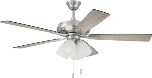 El ventilador de techo Craftmade Eos de 52 pulgadas con kit de cuatro luces de vidrio esmerilado blanco que incluye bombillas LED regulables cuenta con un motor suave de 3 velocidades, brazos de hoja actualizados y cuchillas reversibles personalizadas de 52 pulgadas. Hay controles remotos opcionales disponibles (se venden por separado).