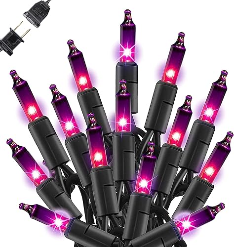 Dazzle Bright Luces de Halloween moradas, 40 pies, 200 unidades, impermeables, incandescentes, enchufables, decoraciones de Halloween conectables