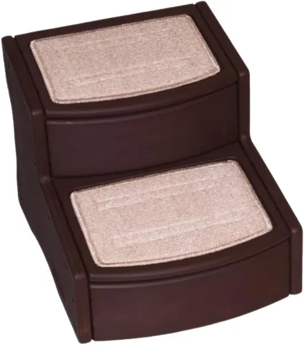 Aterrizajes de escaleras más anchos y profundos para perros pequeños y grandes. La banda de rodadura de alfombra se quita fácilmente y es lavable a máquina. Las pinzas de goma en la parte inferior mantienen el paso seguro y en su lugar. Se junta muy fácilmente. Altura del escalón: 6 pulgadas. Profundidad del escalón superior: 12.25 pulgadas, profundidad del segundo escalón: 11.5 pulgadas. Color: Chocolate. Dimensiones del producto: 17"L x14"W x13"H. Peso del producto: 4 lbs.