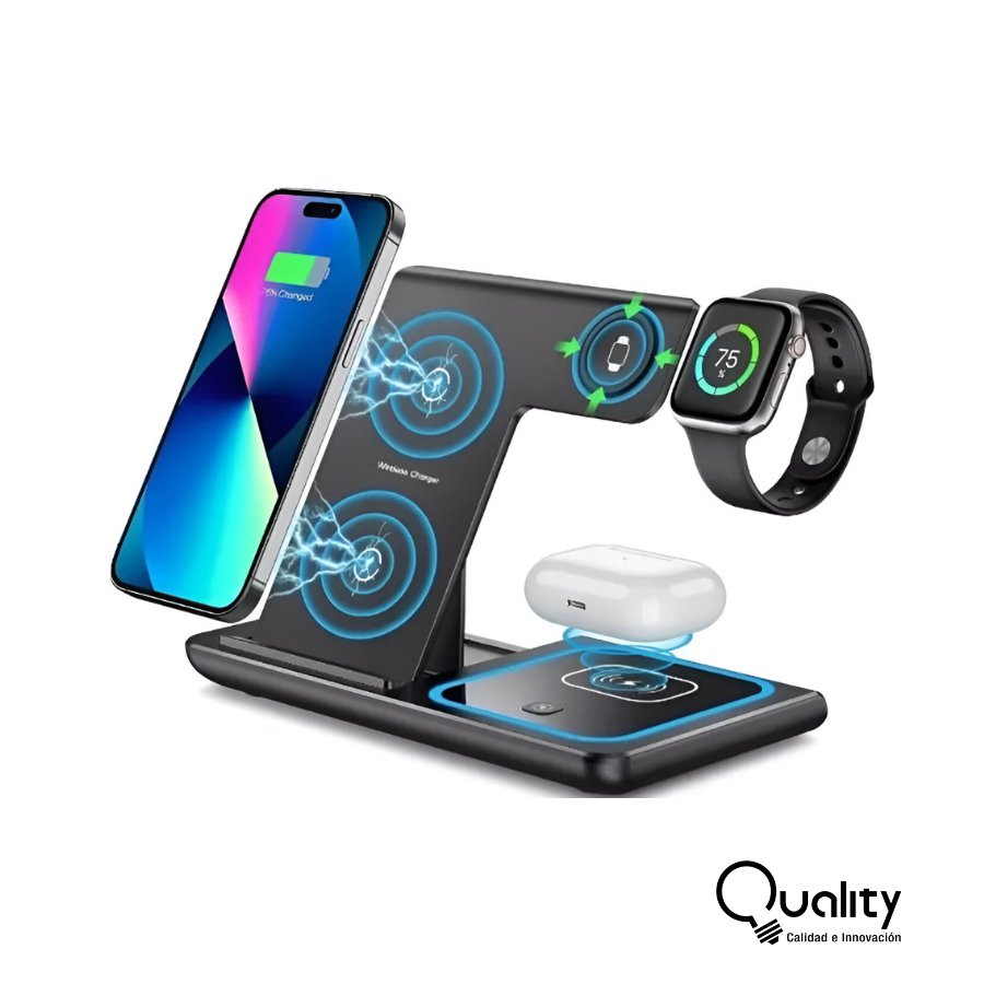 Se despacha de 24 a 48 horas - ESTACIóN DE CARGA INALáMBRICA, SOPORTE DE CARGADOR INALáMBRICO 3 EN 1, CARGA INALáMBRICA RáPIDA PARA IPHONE PRO MAX XR XS 8 PLUS, PARA APPLE WATCH SE, PARA AIRPODS 3 2 PRO (BLANCO) Cargador inalámbrico 3 en 1: esta estación de carga puede cargar la mayoría de los teléfonos, soporta carga rápida para múltiples dispositivos Apple al mismo tiempo, compatible con iPhone 15141313Pro13 Pro Max1212 Pro12 Pro MaxSEXRXXSXS Max11 Pro Max11 Pro118 Plus8 o Android; Apple Watch SE, Airpods Pro32 con funda inalámbrica no para Airpods 2 versión no inalámbrica. Un dispositivo imprescindible para los fanáticos de Apple. Di adiós a los cargadores individuales. Estación de carga inalámbrica rápida: simplemente coloca tus múltiples dispositivos en la estación de carga, disfruta de una carga inalámbrica rápida. Después de muchas pruebas extremas y comentarios de los ventiladores, utilizamos chips de carga de alta potencia y componentes electrónicos de clase mundial para garantizar la calidad de la estación de carga del teléfono, y un adaptador equipado de 18 W, tarda aproximadamente 2-3 horas para dar a tu teléfono celular, reloj y auriculares una carga completa. Soporte de carga de viaje portátil y plegable: la estación de carga para iPhone es plegable, ligera y portátil, y se puede poner en una bolsa o maleta. Esta almohadilla de carga inalámbrica no solo es adecuada para tu hogar, oficina, si estás de viaje o en un viaje de negocios, trae este cargador 3 en 1, que puede cargar varios dispositivos a la vez. Además, versátil como soporte para teléfono celular con ajuste de ángulo. Es como una almohadilla de carga, simplemente deja el teléfono plano para mantenerlo cargando. Base de carga inalámbrica segura: el cargador inalámbrico de doble bobina garantiza un área de carga más amplia en orientación horizontal o vertical. Con protección contra sobrecorriente, protección contra sobretensión y protección contra sobretemperatura, así como función de detección de objetos extraños. El diseño razonable del circuito interno puede evitar daños por sobrecarga a la batería del equipo y garantizar una carga segura del dispositivo. Luz nocturna de respiración inteligente: esta estación de carga de teléfono se ve elegante y no ocupa mucho espacio en tu mesita de noche y mesita de noche. La luz azul indica que tu teléfono se está cargando correctamente, mientras que una luz azul flash te avisa de que hay un objeto extraño o teléfono está fuera de lugar. La almohadilla de carga se puede encenderapagar manualmente si la luz te molesta. Una lámpara de escritorio perfecta con cargador inalámbrico. Antideslizante y compatible con fundas: las almohadillas de silicona antideslizantes protegen tus dispositivos de deslizamiento. Nuestro soporte de cargador inalámbrico se puede cargar directamente a través de fundas protectoras de teléfono ?2.0.197 in 0.1 pulgadas, ahorra el problema de quitar la funda del teléfono mientras se carga. El mejor accesorio de teléfono celular para tu escritorio y mesita de noche, ahora adecuado para simplificar tu espacio vital. Nota: retira los accesorios magnéticos o metálicos de la carcasa del teléfono cuando se cargue Regalo perfecto para familias: el paquete incluye una estación de carga 3 en 1, un cable de carga, un adaptador de 18 W y una guía de usuario idioma español no garantizado. La estación de carga inalámbrica es una decoración perfecta para el escritorio y regalos del día de San Valentín para él y un impresionante regalo de Navidad para tus familiares y amigos. Si tienes alguna pregunta o problema, no dudes en ponerte en contacto con nosotros