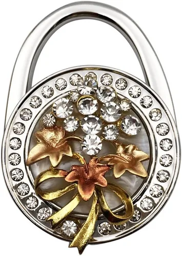 Hermoso adorno para combinar con tus bolsos. Este colgador de bolso es un artículo práctico para enganchar tu bolso a una mesa u otra superficie plana. El gancho tiene goma negra en la parte posterior, la parte trasera antideslizante puede evitar que tu bolso se caiga. Son ligeros pero ofrecen una gran manera de proteger tu bolso. También es un regalo ideal para tus amigos o familiares.
