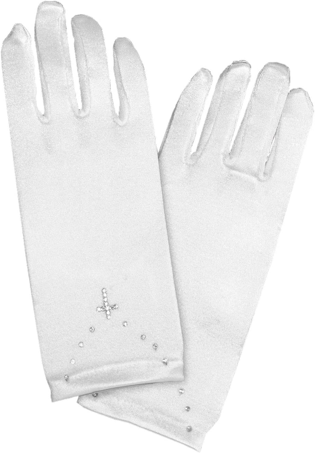 - satin Cierre de Pull On A tu hija le encantará: estos guantes blancos para primera comunión cuentan con una cruz de diamantes de imitación en la parte inferior del guante. Fácil de usar: estos guantes de primera comunión vienen en dos tamaños y se deslizan y quitan. Cómodo: estos guantes de primera comunión para niñas están hechos con un suave satén. Gran regalo de un regalo: estos guantes de primera comunión completarán su atuendo en este día especial. Guantes de Primera Comunion niñas blanco