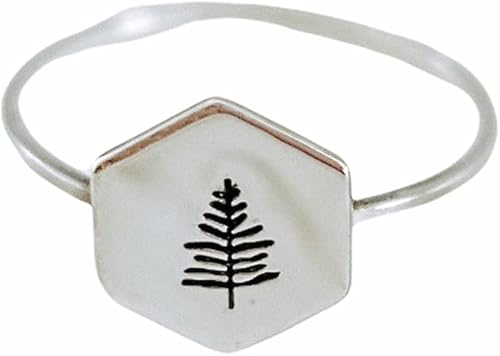 Precio Hexagon Nature Ring • Dainty Sterling Silver or Gold-Filled Ring • Tiny Stack Ring • Hike Jewelry • Ocean Wave, Evergreen, Mountain Ring en El Salvador