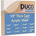 Duco - Hoja de acrílico fundido transparente hecha en Estados Unidos, 1/8 de pulgada de grosor, 12 x 12 pulgadas, paquete de 8 láminas de plexiglás
