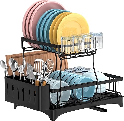 ¿Para qué sirve Dish Drying Rack, 2-Tier Stainless Steel Dish Rack with Removable Utensil Holder, Rust-Proof Dish Drainer with Drying Board,Large Dish Racks for?