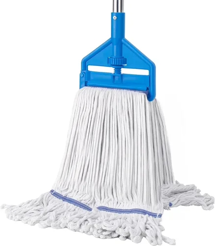 Trapeadores húmedos comerciales resistentes: nuestra mopa húmeda con extremo en bucle con mango de 60 pulgadas de largo y 1 cabezal de fregona de gran tamaño es perfecta para trabajos comerciales industriales o de limpieza de suelos del hogar. Cabezal de trapeador de algodón reutilizable: nuestro cabezal de fregona está hecho de material de algodón de alta calidad, suave y súper absorbente. Que no solo puede absorber rápidamente las manchas de agua en la superficie del suelo, quitar fácilmente la suciedad del suelo. Y la banda trasera de hilo evita que los bucles se enreden y reducen el deshilachado. Mopa de cuerda con extremos de bucle: por lo que ya no tienes que preocuparte de que el cabezal del trapeador se caiga o se afloje durante el uso. Lo que te hace obtener una herramienta de limpieza más estable y fuerte. Y también ayuda a que los bucles se queden planos en el suelo para un máximo contacto con la superficie. Mango resistente: el mango del trapeador industrial está hecho de acero inoxidable grueso, con un diseño reforzado entre los postes, lo que lo hace más resistente y duradero. La mopa de 60 pulgadas de largo te permite estar de pie y limpio, reduciendo la presión de la cintura. Adecuado para todas las superficies: utiliza este trapeador para limpiar todo tipo de superficies, incluyendo suelos de madera del hogar, suelos de cocina, suelos de restaurante, suelos de baño, garajes, almacenes, oficinas, terrazas, suelos de baldosas, suelos de mármol y madera dura.