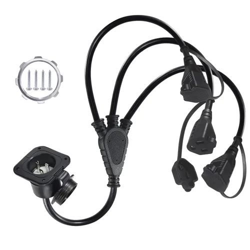 KUNCAN Enchufe de Puerto de CA de 15A - Toma de Entrada de Alimentación de 125V con Cable de Extensión Triple de 18 Pulgadas, Enchufe NEMA 5-15 con