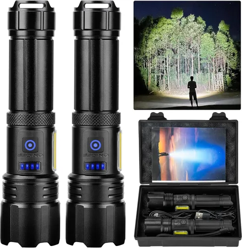 Sigoobal Linterna LED recargable de alto lúmenes, 99,000 LM, linterna potente súper brillante, luces de flash de alta potencia, linternas de mano