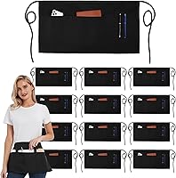 DUSKCOVE Paquete de 12 delantales de servidor con 3 bolsillos, medio delantal para camarera para mujeres y hombres, resistente al agua con correa