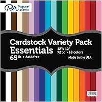 Accent Design Paper Accents Paquete variado de cartulina, 12 x 12 pulgadas, 72 hojas esenciales de 65 libras, cartulina pesada para álbumes de