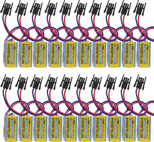 Número de modelo de la batería: A6BAT, batería de tamaño 2/3A 3.6V batería de litio Batería de litio de 3,6 V con cable y conector, conector de 2 cables de 2 pines Batería: batería de litio de tamaño 2/3 A 3,6 V, dimensiones de la batería: diámetro 0.669 in x 1.323 in Otras aplicaciones: sistema de alarma, fuente de alimentación de respaldo de memoria PLC, sistema CNC, servomotores, herramientas mecánicas, instrumentos, equipos electrónicos especiales, etc. El paquete incluye: 20 pilas PLC A6BAT ER17330V