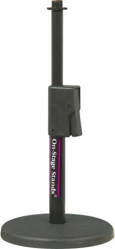 Excelente soporte para escritorio y micrófono de altura corta Eje extraíble con embrague de liberación silenciosa que proporciona ajustes de altura de 9.5" a 16" Base sólida de 6 pulgadas con patas de goma antideslizantes para estabilidad y amortiguación de vibraciones Producto propietario de personas de música como soportes On-Stage y los demás Los soportes y accesorios más innovadores de la industria