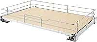 Rev-A-Shelf 5330-33BCSC-MP - Organizador de almacenamiento extraíble de alambre cromado y cesta de madera de 33 pulgadas con cierre suave para base