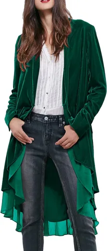 R. Vivimos - Chaqueta con volados, asimétrica, larga, de terciopelo, informal, para mujer