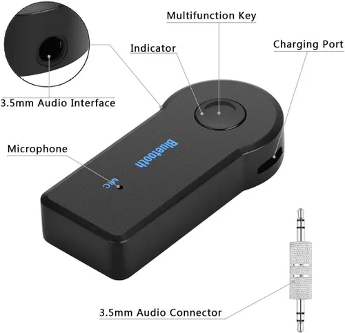 Receptor Bluetooth de gran altura 5.0] El receptor Bluetooth proporciona una conexión más rápida y estable y garantiza una mayor calidad de audio. Soporte de protocolo Bluetooth HFP HSP A2DP AVRCP, receptor Bluetooth 5.0 lleva tu vida inteligente al siguiente nivel con música inalámbrica y llamadas manos libres. Disfruta de música de alta calidad desde tu smartphone o mesa. Fácil de operar: puedes disfrutar de la función Bluetooth inalámbrica simplemente conectándolo al puerto auxiliar (AUX) del automóvil utilizando el adaptador de -0.138 in (incluido). Utilice la función de búsqueda Bluetooth de su teléfono móvil para emparejar con el transmisor. Utilízalo para tu música, video o llamadas manos libres favoritas. Llamada manos libres y conexión automática: el micrófono integrado reduce el ruido de fondo durante la conducción y logra una calidad de audio clara y clara. Con un diseño de un botón, puedes responder llamadas y reproducir/pausar audio y video. Conéctese automáticamente al último dispositivo emparejado sin necesidad de configuración para un uso repetido. Larga vida útil: el transmisor se puede cargar completamente en 30 minutos con hasta 4 horas de uso y 150 horas de espera. Compatible con estéreo doméstico/altavoces, estéreo de automóvil y auriculares con entrada de audio de 0.138 in. Construcción compacta con accesorios de clips. Servicio de calidad: si tienes alguna pregunta sobre nuestros productos, ponte en contacto con nosotros directamente. Te responderemos a tiempo para ayudarte a resolverte y satisfacerte. Producido por la tienda de la marca anbaole