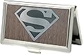 Buckle-Down Portatarjetas de visita - Superman Logo Marquetry Negro Nogal/Metal - Pequeño
