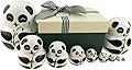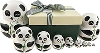 Apol Set of 10 Big-Belly Wooden Handmade Panda Bear with Bamboo Nesting Dolls Matryoshka Russian Doll in a Box with Bow for Kids Toy Home Decoration