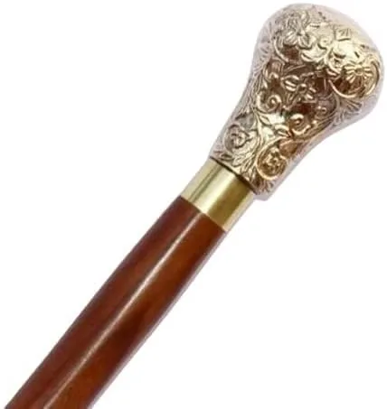 • Material: madera y latón Se están volviendo más populares entre los clientes con artritis. El diseño del mango permite al cliente sostener el bastón cómodamente sin causar dolor a tu mano o dedos. El bastón es muy cómodo y hermoso agarre grabado y también se ve muy elegante y decente con el afilado. Si estás buscando un paseo elegante y resistente