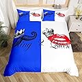 Juego de funda de edredón azul y blanco, tamaño King y Queen, juego de ropa de cama para parejas y amantes de las parejas, tamaño King para mujeres,
