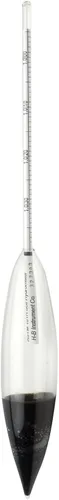 Cumple con los requisitos de precisión de los hidrómetros ASTM - No. 151H Se utiliza para determinar la gravedad específica del suelo Serializado individualmente; lastre y vidrio sin plomo Longitud: 280mm (11"); Rango: 0,995/1,038; Divisiones: 0,001; Precisión: ±0,001 Empaquetado con una declaración de precisión en varios idiomas (inglés, francés, alemán, italiano, portugués y español) que indica precisión rastreable a NIST; antiguo HB # 151H