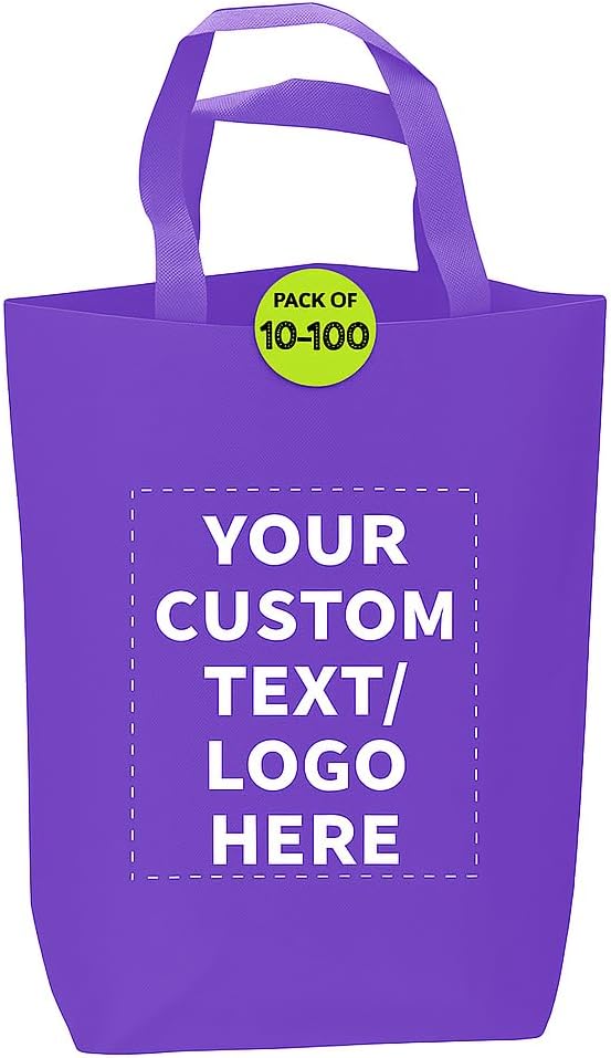 DISCOUNT PROMOS Customizable Large Tote Bag, Set of 10/50/100 Heavy Duty & Reuseable Bulk Pack - Purple