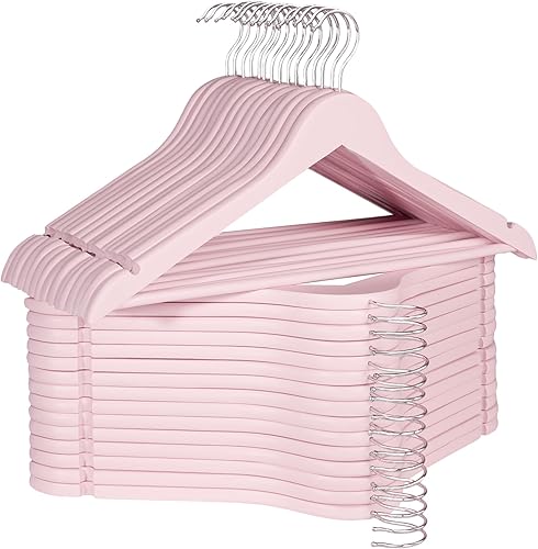 StorageWorks Percha de madera para abrigos, perchas de madera para ropa, paquete de 30 unidades, color rosa, perchas de madera natural para abrigos