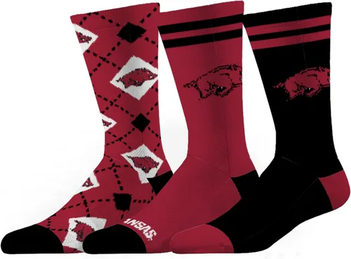 Apoya a tu equipo universitario favorito 3 veces más con este paquete de 3 calcetines de vestir con licencia oficial de la NCAA Arkansas para hombre Paquete de 3 de la colección Campus. Hecho de súper 98 % poliéster, 2 % goma y 2 % elastano. Incluye 3 pares únicos de calcetines de vestir de Arkansas que cuentan con el logotipo y colores de tu equipo favorito, todo en el calcetín más cómodo del mundo. Mezcla de poliéster combinado duradera para resistencia a la abrasión y absorción de humedad para ayudar a mantener los pies de tu fanático de Arkansas saludables y secos. Puntera invisible. Lavar a máquina estos calcetines de fútbol americano universitario y ver cómo mantienen su suave sensación y forma de felpa Estos calcetines de regalo de la NCAA para hombre son el regalo perfecto de la NCAA. Este paquete de 3 calcetines de vestir universitario normalmente tiene 2 pares de calcetines alternos de rayas de Arkansas y 1 par de calcetines de argyle de Arkansas, todos con la tecnología de comodidad de Strideline y todo ideal para llevar en cualquier ocasión. Ideal para el día del juego o si solo quieres representar a tu equipo en un viernes casual. Muchos usos: ya sea que quieras representar a tu equipo en la sala de juntas o un viernes casual, perfecto para padrino de boda en una boda de Arkansas, ideal en el estadio de fútbol o torneo de baloncesto, o simplemente sentado en el sofá viendo el partido. Es un regalo perfecto de la NCAA para el Día del Padre, Navidad de Arkansas o como un regalo de cumpleaños para los fanáticos de la NCAA en tu vida.