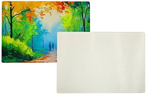Los tableros de vidrio templado se pueden personalizar con imágenes, diseños y logotipos a todo color, mientras que producen reproducciones de imágenes vibrantes. Esta tabla de cortar de vidrio condimentará el corte de la cocina Combina tu tabla de cortar con el tema de tu cocina o salpicadura trasera para un diseño inspirado Con el proceso de transferencia de sublimación de tinte, puede imprimir imágenes digitales de alta calidad en una gran variedad de artículos hechos de cualquier material que esté tratado o recubierto de polímero o prendas hechas de poliéster. La impresión se logra utilizando una impresora, tintas especiales de sublimación, papel y una prensa térmica. Es posible que desee usar una lámina de teflón para proteger su artículo de quemaduras y para evitar que las "imágenes fantasmas" se depositen en su placa térmica, que luego puede transferirse al siguiente elemento que presione (solo coloque la hoja entre el elemento térmico y el artículo). Luego presiona. Tenga cuidado al retirar la hoja impresa, si se desplaza contra el artículo que imprimió, puede producir una "imagen fantasma".
