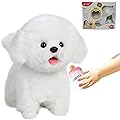 CU-MATE Perro de simulación maltés interactivo - Juguete electrónico para cachorros realista con caminar/ladrar/meneo de cola/hablar - Juguete de