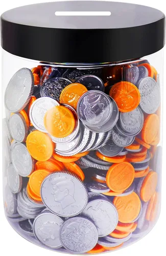 Ya sea que esté enseñando a su hijo ahorros básicos y enseñando a sus hijos a hacer un plan de ahorro de dinero para su viaje de ensueño. ¡Los adultos valorarán tener un lugar de aterrizaje para el cambio de contador de monedas! Nuestro tarro de monedas grande es una mejor opción que inspirará y enseñará a los niños a ahorrar, gastar y compartir sabiamente para toda la vida. ¿Por qué elegir el tarro grande transparente Mczxon para monedas? 1. Sin daños accidentales: El tarro de punta transparente está hecho de plástico PET duradero y seguro para alimentos. Nuestro tarro de plástico de punta grande para dinero es más seguro y ligero que el banco de monedas de vidrio, el banco de monedas de cerámica. No tienes que preocuparte por si el tarro de plástico de punta grande se romperá bajo el peso de todas estas monedas. 2. Aspecto altamente transparente: El tarro de dinero negro con un aspecto altamente transparente te permite ver claramente el equilibrio del depósito dentro del tarro de plástico. Después de depositar fondos semanalmente/mensual, usted estará encantado con el crecimiento de ahorros. 3. Hucha transparente universal: el tarro de alcancía puede contener todas las monedas estadounidenses, incluyendo centavos, níqueles, diez centavos, cuartos, medio dólar y monedas de dólar. 4. Tamaño adecuado: Capacidad: 2 cuartos de galón = 1/2 galón = 8 tazas = 64 onzas líquidas. El banco de dinero de plástico puede almacenar alrededor de 1,300 monedas a plena capacidad. 5. Escenarios de aplicación: El banco de cambio transparente es ideal para monedas y dinero en efectivo, como jarra de monedas para restaurantes, cafeterías, hoteles, salones, bares, bailes, ferias comerciales, lavado de autos, etc. 6. Regalos llamativos: Nuestro gran contenedor de plástico para monedas es una gran opción de regalo para que los niños cultiven su sentido de ahorrar dinero desde una edad temprana. 7. Tarro grande de boca ancha: Tapa de rosca fácil de poner y quitar. El frasco grande de donación se puede sacar abriendo la tapa, lo que es muy conveniente. Consejos: Cuidado: este frasco de ahorro de monedas no es apto para lavavajillas y microondas. El producto contiene: 1 tarro de monedas de plástico con ranura. 1 calcomanía para tarro de puntas
