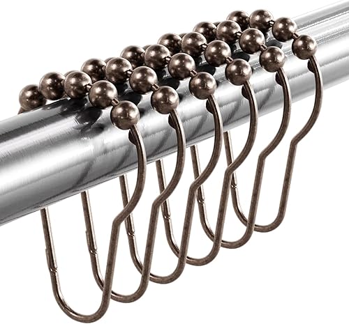 Metal duradero: los anillos de cortina de ducha están hechos de metal duradero de alta calidad. El revestimiento chapado en la cubierta de los ganchos de cortina de ducha te permite usarlo en baños húmedos. Fácil de deslizar: las bolas de rodillo esféricas diseñadas de los ganchos de cortina de ducha reducen la fricción y permiten que los ganchos de ducha se deslicen por la barra suavemente sin esfuerzo. Chapado y pulido: el metal está chapado y pulido en la cubierta para mejorar la resistencia al óxido. Estos anillos de ducha también se utilizan como decoración elegante para tu baño. Ganchos de cierre resistentes: estos ganchos de ducha de metal son lo suficientemente fuertes como para sostener una cortina de ducha pesada. El diseño sellado evita que la cortina se deslice de los anillos. Juego de 12: se vende como un juego de 12 para una apertura estándar de 60 pulgadas o 72 pulgadas. 12 en un paquete puede satisfacer la demanda de cantidad para un baño habitual.
