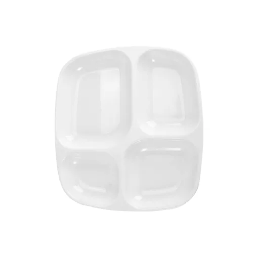 tooloflife Bandeja de cena dividida Plato reutilizable Cuatro platos redondos divididos Caja de almuerzo de plástico para vajilla conveniente Blanco tamaño large
